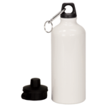20 oz White Aluminum Water Bottle. Water bottle is 7" (H) without the lid. Includes two lids (on screw lid, one flip-top lid). Includes one carabiner with a key ring.
